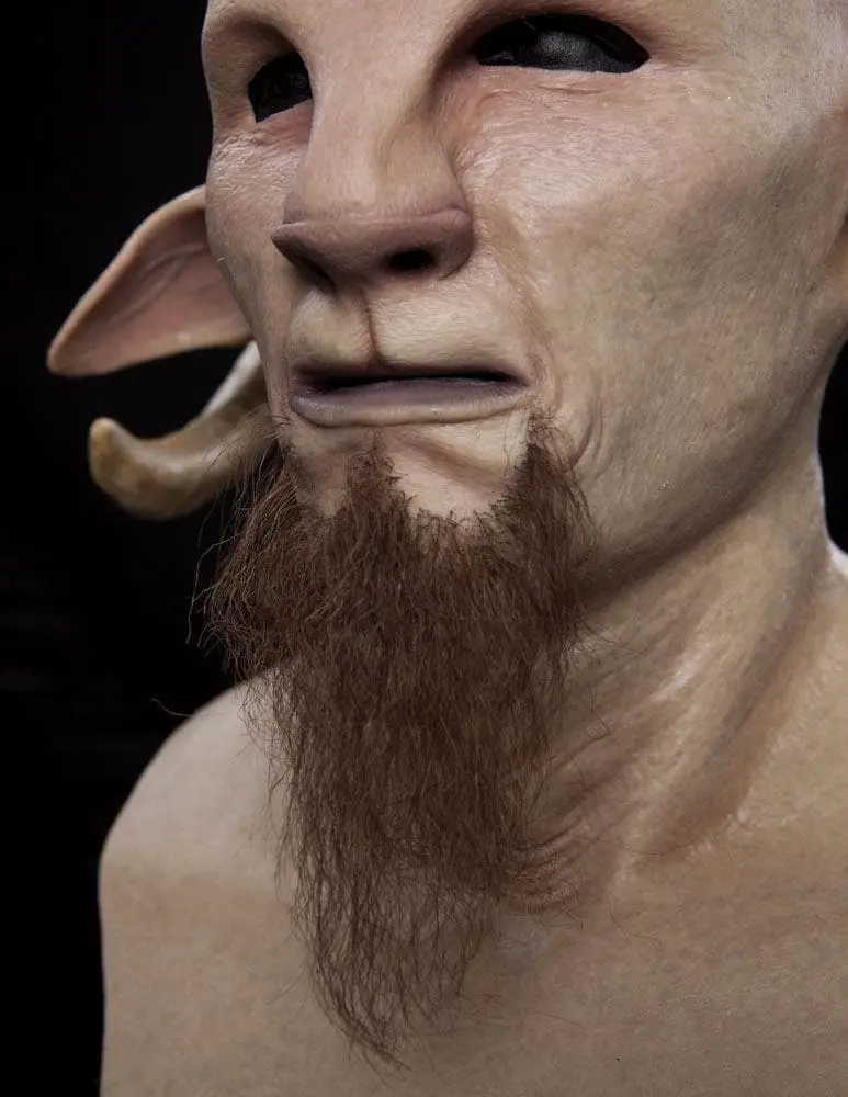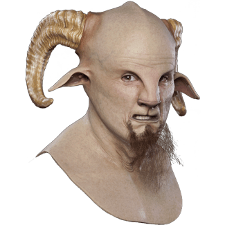 Whether from the dark labyrinths of fantasy or the ancient woodlands of myth, this old satyr probably wont be found prancing happily through the grass. Puck is a freakish manimal with floppy goat ears and large curved ram horns. The horns are made with lightweight, durable resin that add a lot of character to Puck without making it cumbersome to wear.