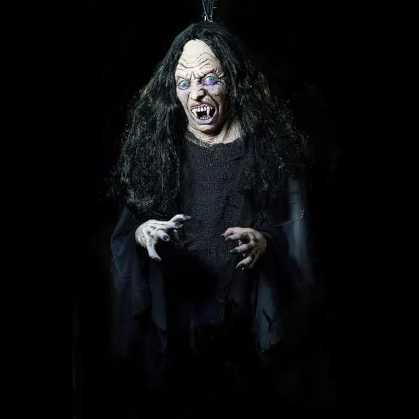 Hanging Vampire- The Hanging Vampire Halloween decoration from The Horror Dome is a shockingly lifelike prop that will give your guests nightmares for weeks to come. A life size decoration that’s made from latex and filled with foam, this hanging hombre features a cinema-quality level of detail. He features a menacing face, a boney physique, and is wrapped in giant bat wings.